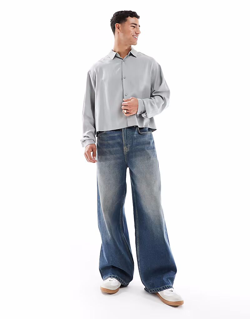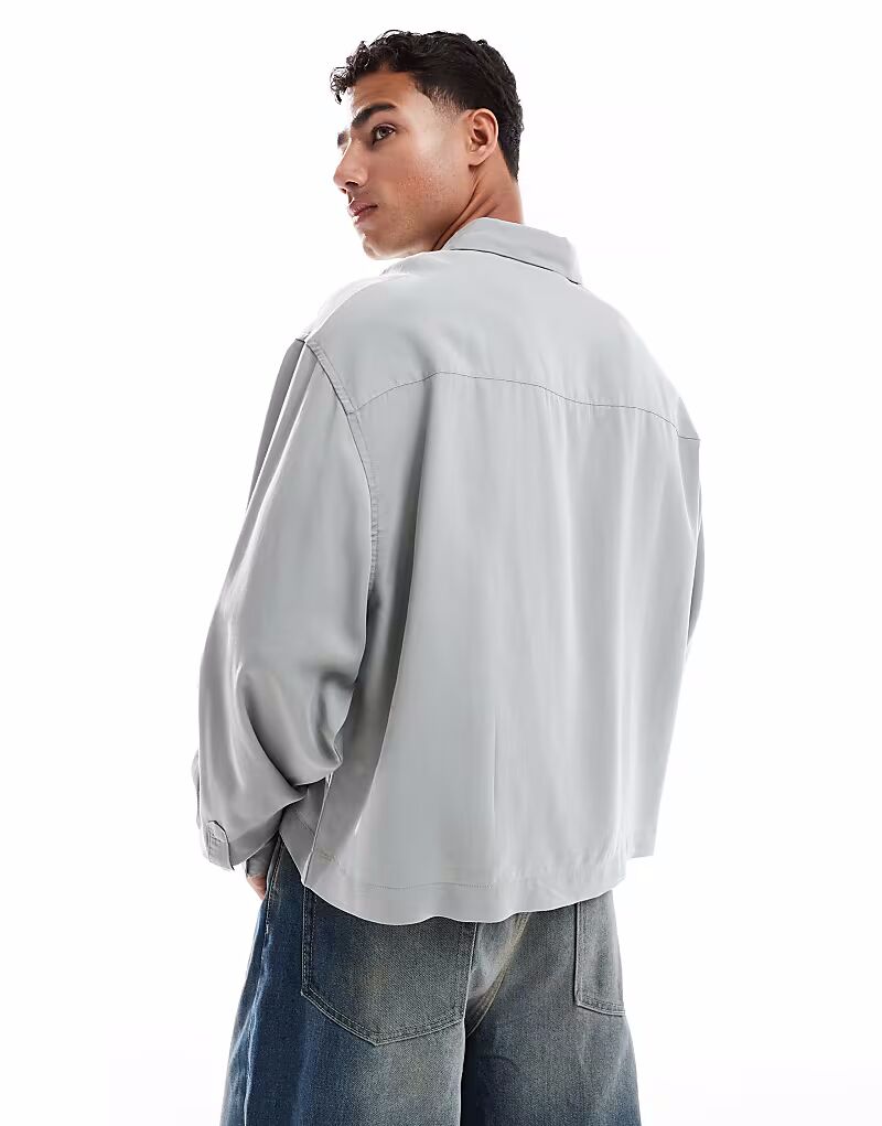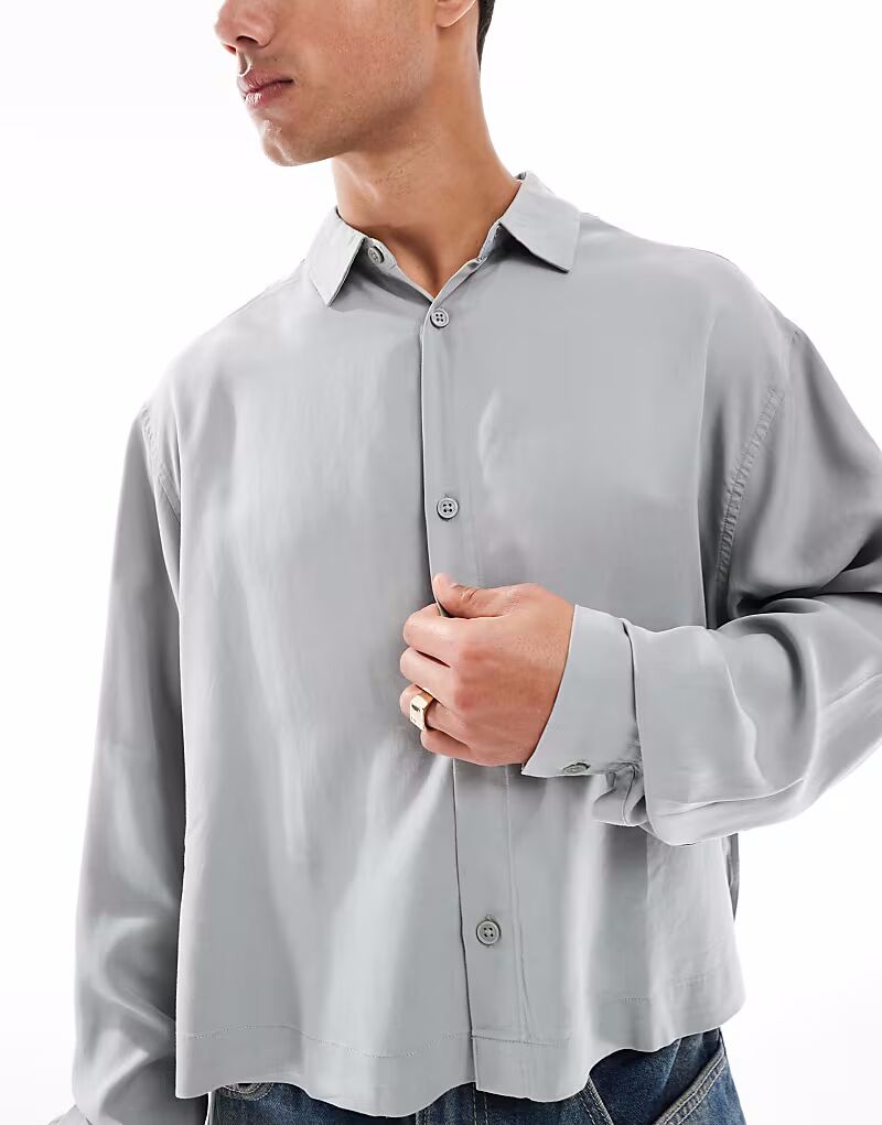 Укороченная рубашка оверсайз премиум-класса ASOS DESIGN серого цвета