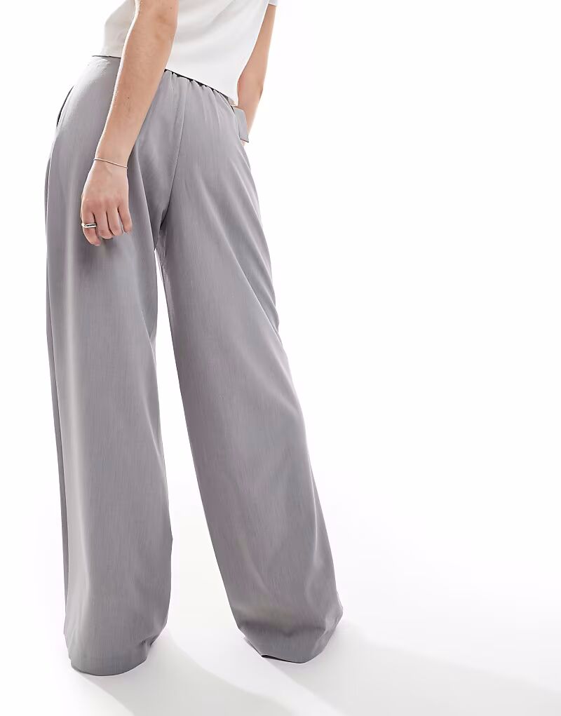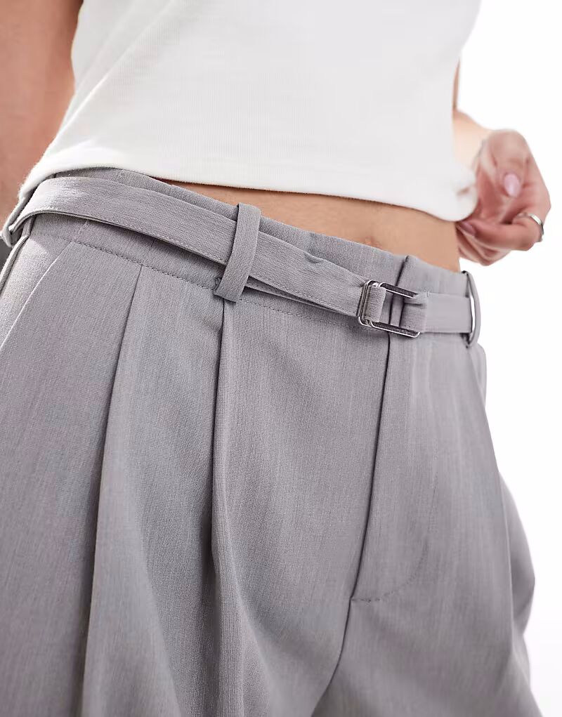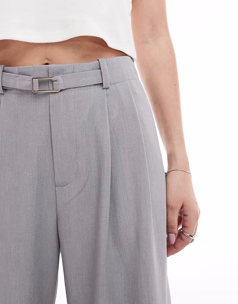 Широкие брюки Stradivarius с поясом серого цвета