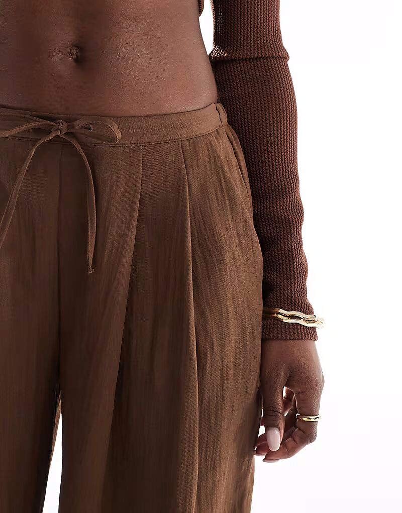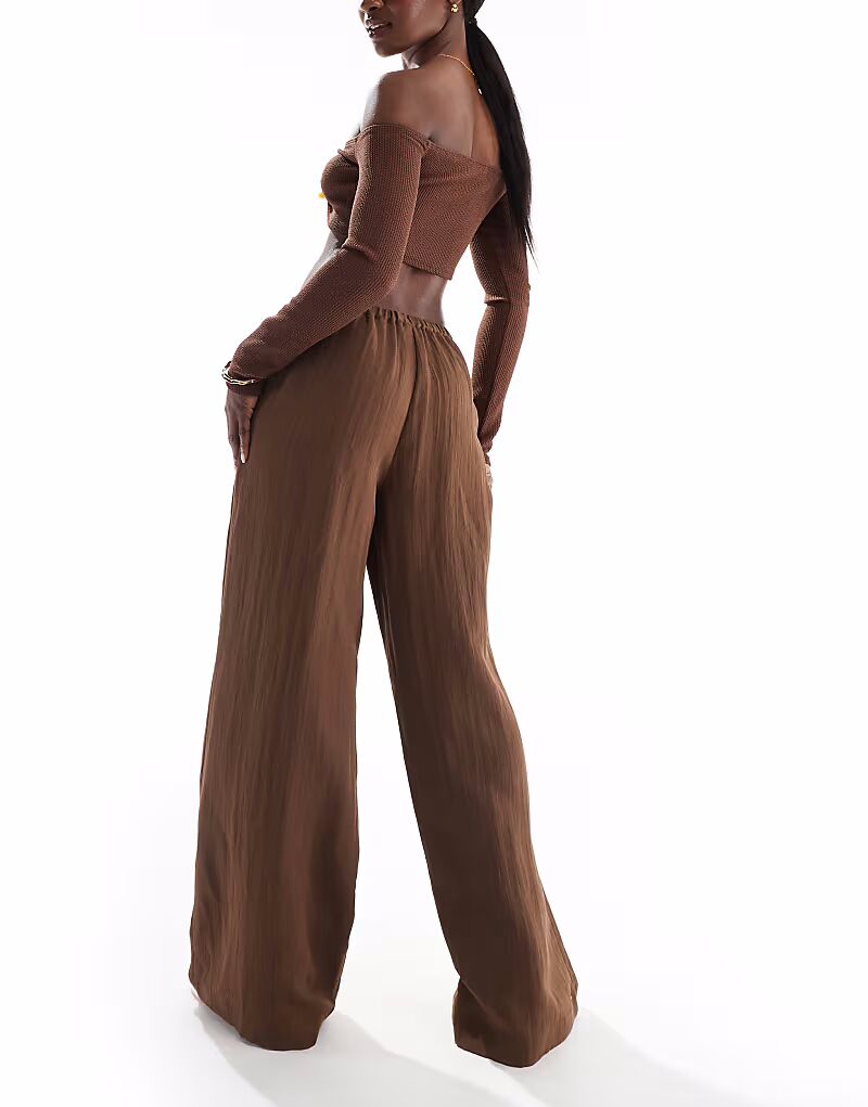 Широкие брюки Stradivarius с жатым эффектом коричневого цвета