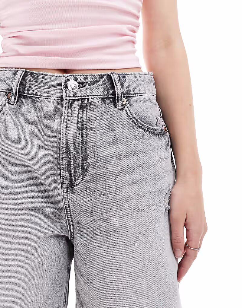 Джинсовые шорты Stradivarius серого цвета с эффектом потертости
