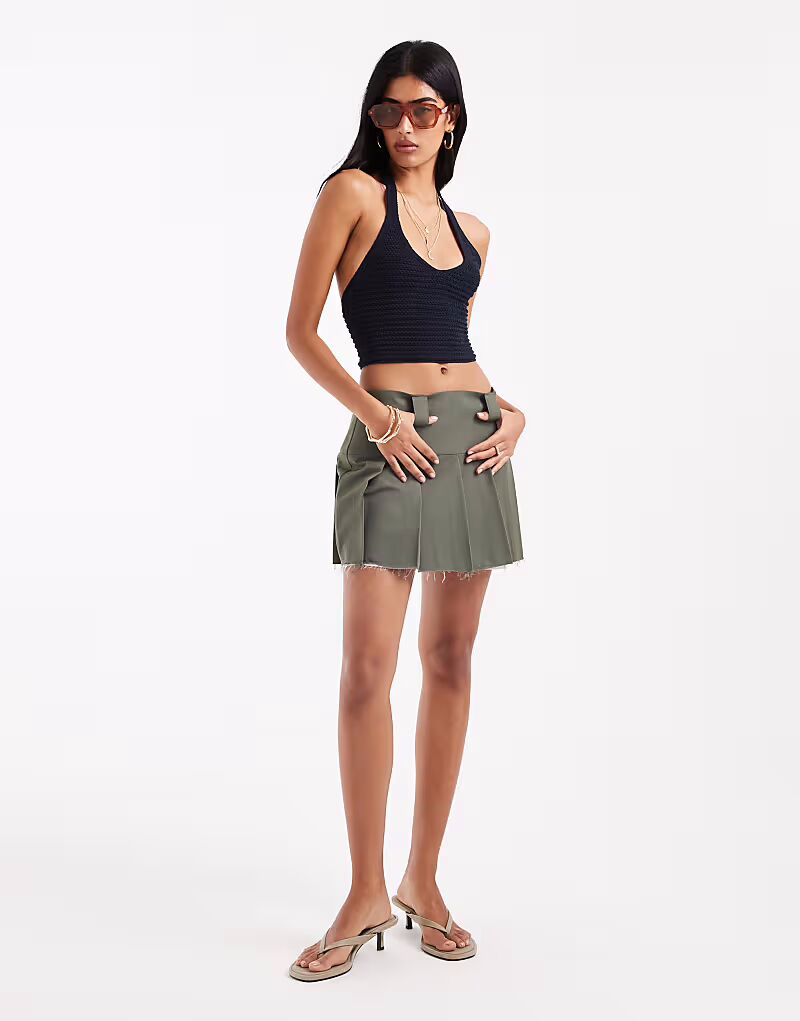 Укороченный топ Stradivarius с вырезом халтер в темно-синем цвете 3 203₽
