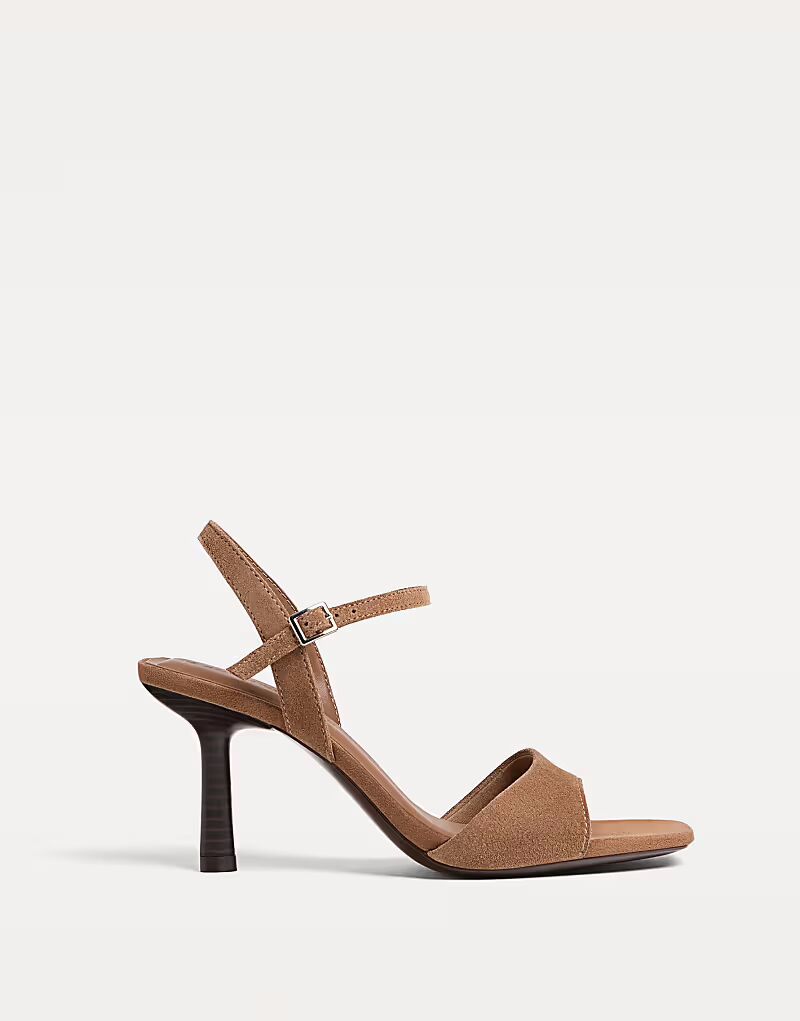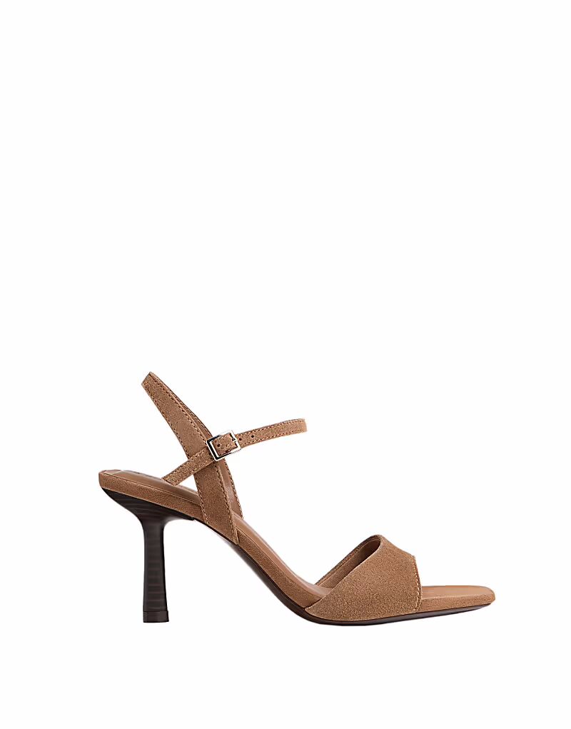 Босоножки Stradivarius из кожи на каблуке коричневого цвета