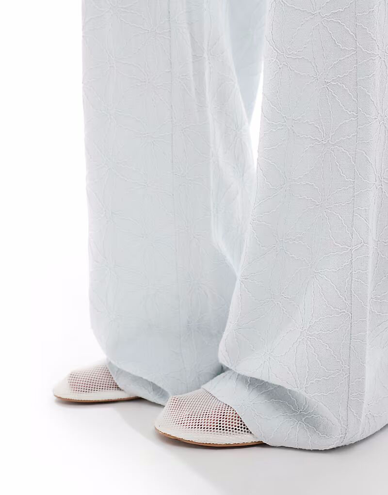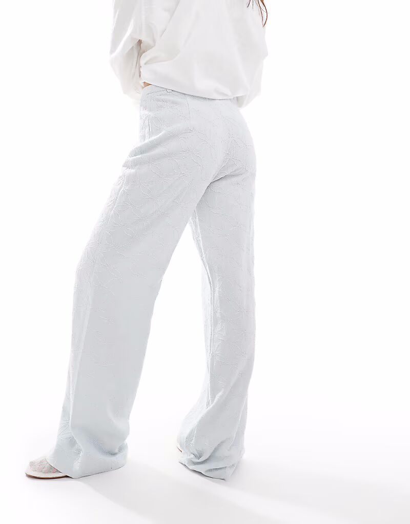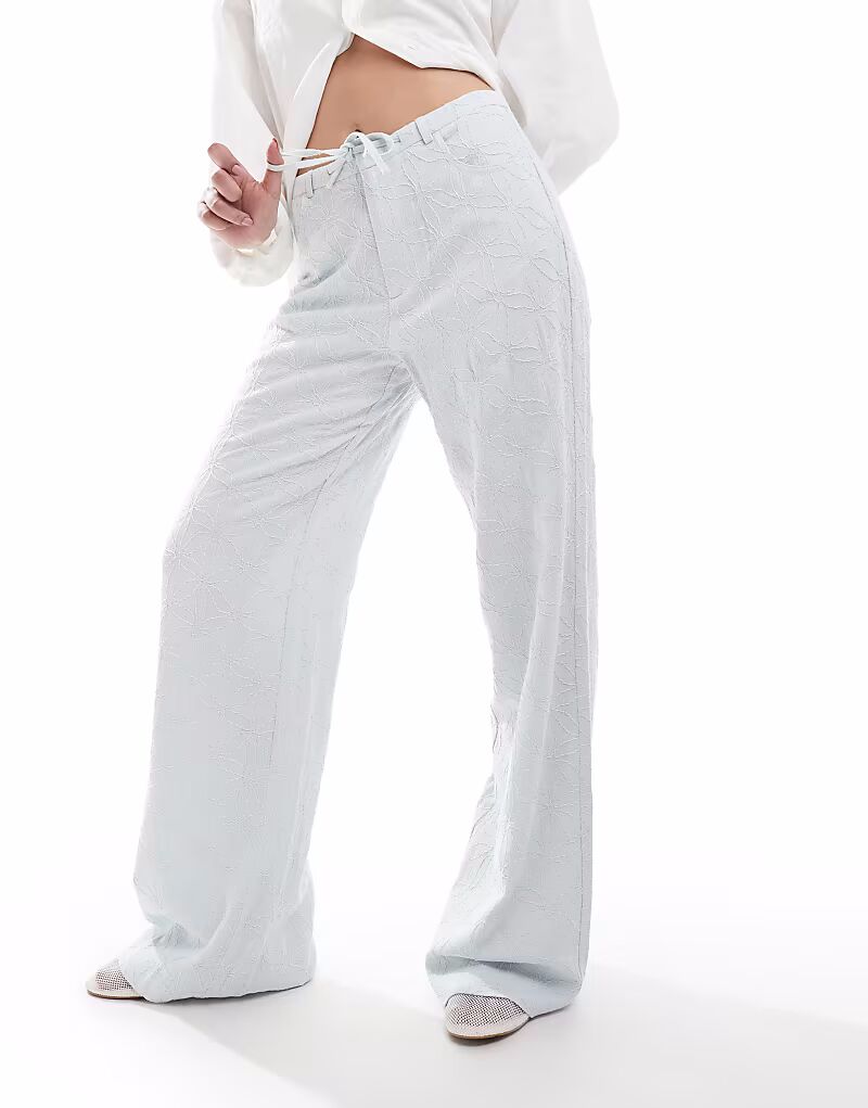 Брюки Stradivarius с вышивкой и имитацией льна в синем цвете 5 574₽