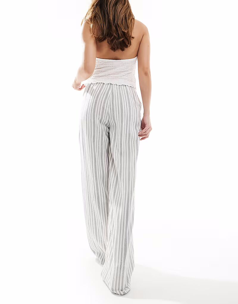 Брюки Stradivarius с эффектом льна и жатым эффектом в полоску