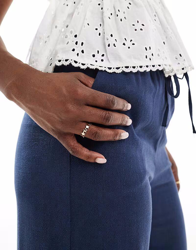 Брюки Stradivarius с эффектом льна, темно-синего цвета