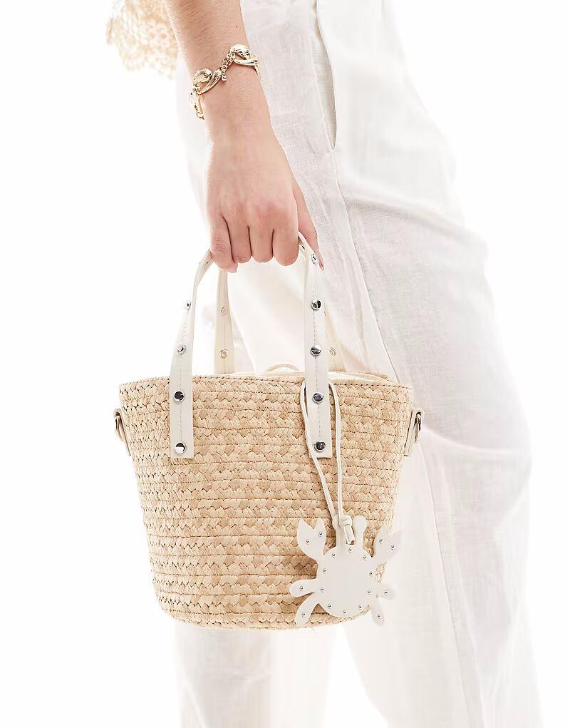 Мини-сумка-ведро Stradivarius из рафии бежевого цвета