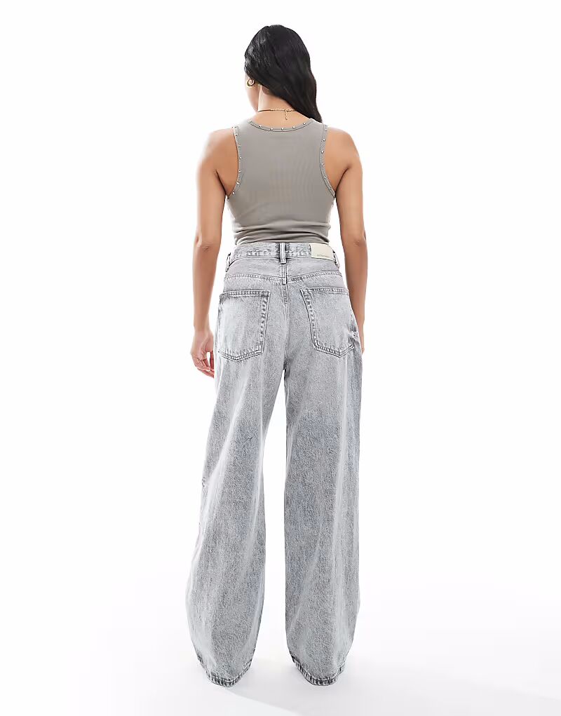 Мешковатые джинсы Stradivarius Petite D88 серого цвета