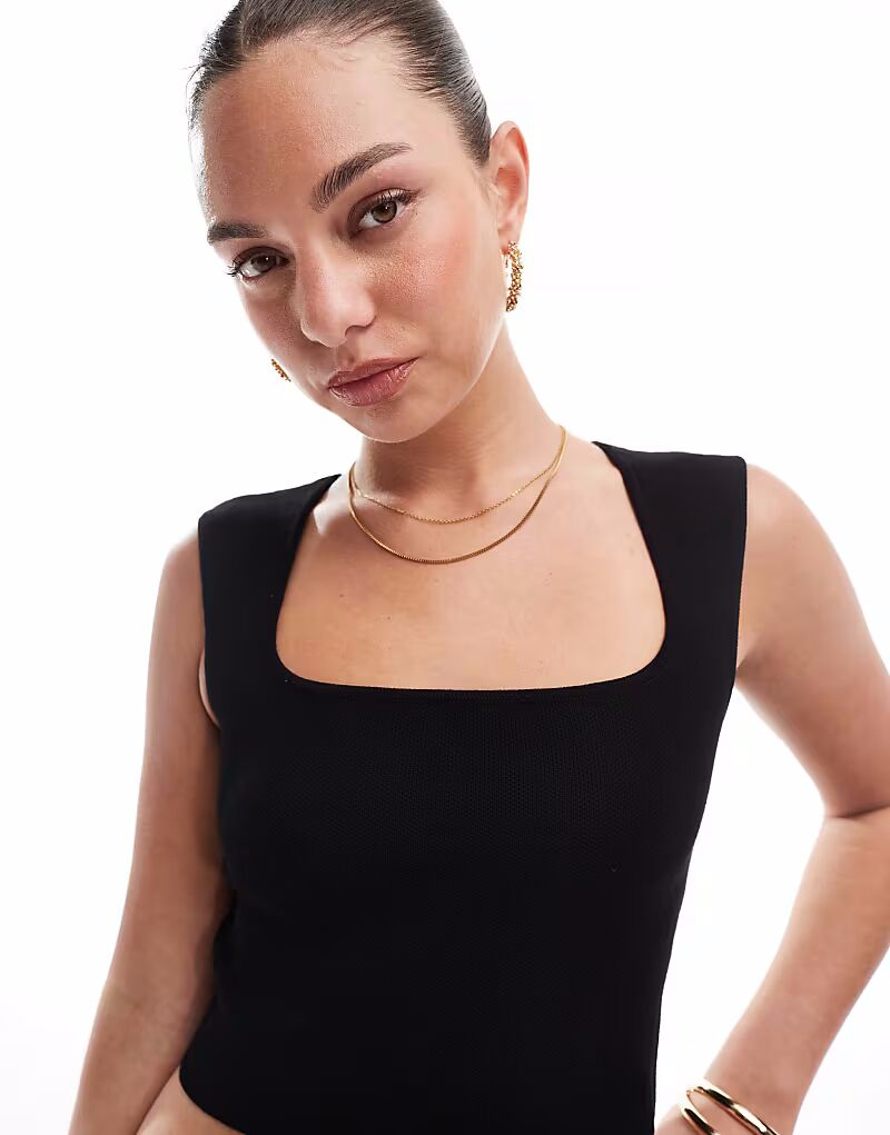 Укороченный топ Stradivarius с квадратным вырезом черного цвета
