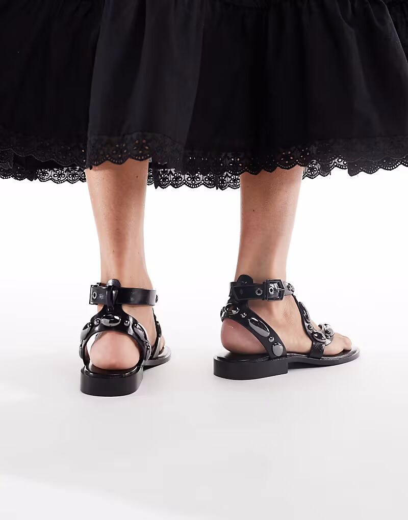 Сандалии Stradivarius с заклепками черного цвета