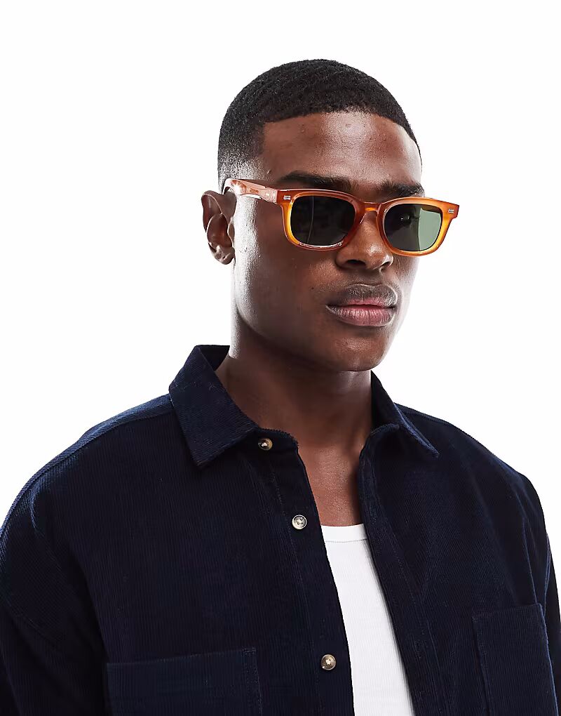 Солнцезащитные очки ASOS DESIGN квадратные с янтарной оправой