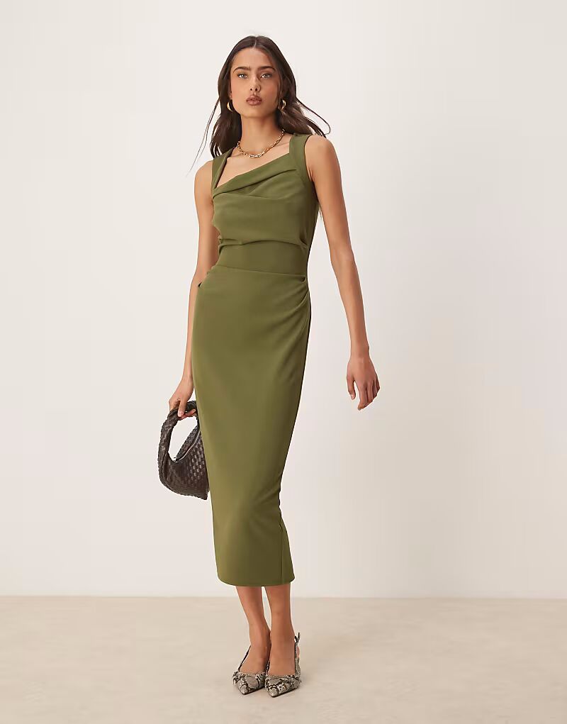 Платье миди с квадратным вырезом ASOS DESIGN цвета хаки