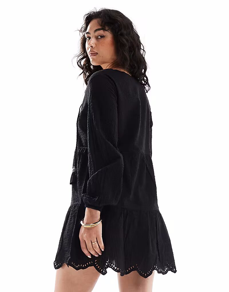 Мини-платье Superdry Broderie с ярусами черного цвета