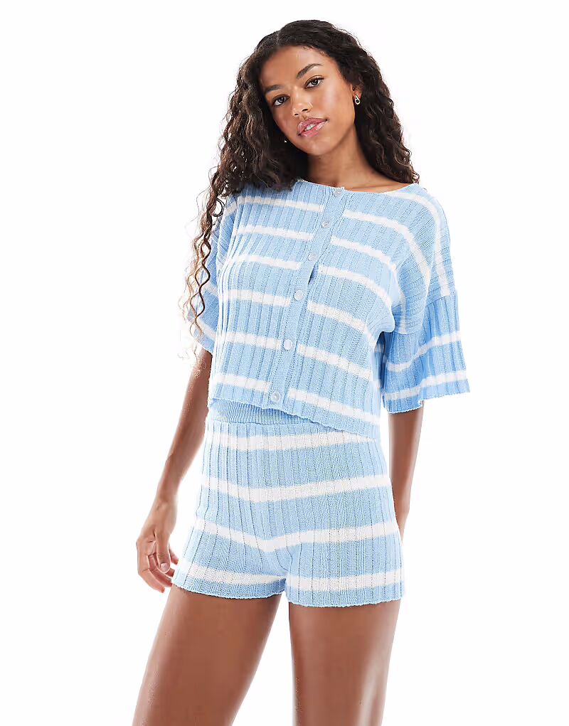 Трикотажные шорты в полоску ASOS DESIGN синего цвета