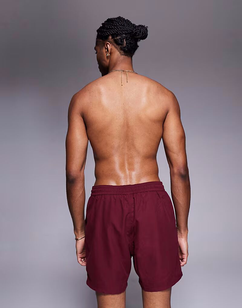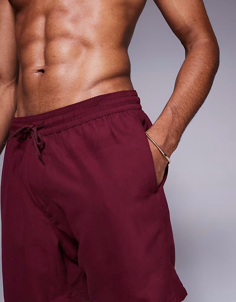 Шорты для плавания ASOS DESIGN средней длины в бордовом цвете