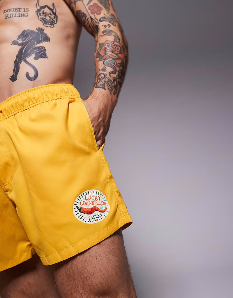 Короткие шорты для плавания ASOS DESIGN желтого цвета