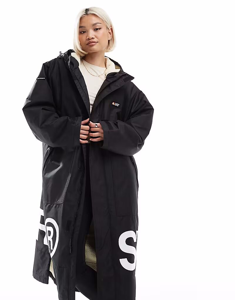 Водонепроницаемый плащ Superdry черного и белого цвета