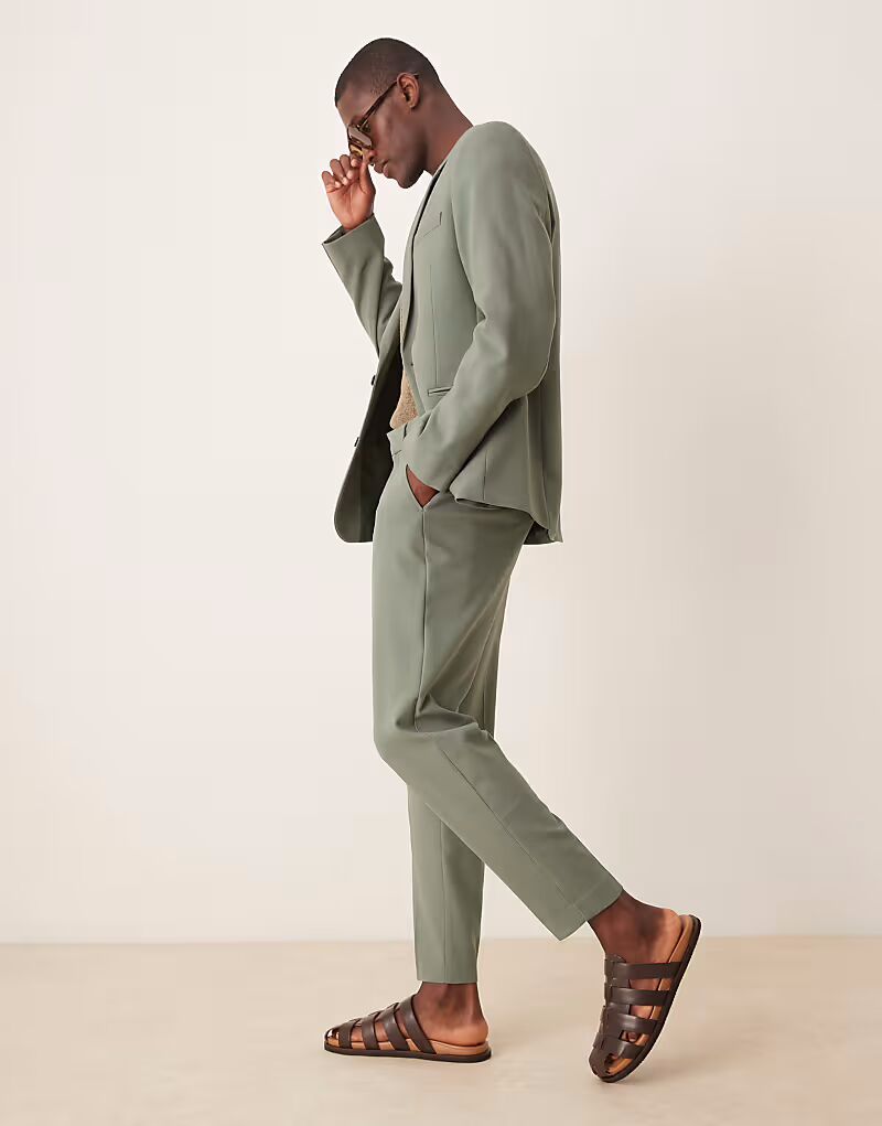 Зауженные брюки ASOS DESIGN из зеленого твила