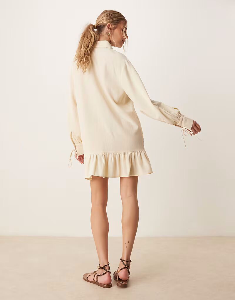 Платье-рубашка мини ASOS DESIGN из твила с вышивкой в ​​тон цвета экрю