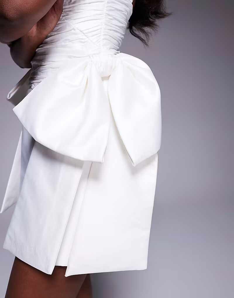 Мини-платье ASOS LUXE с оборками и большим бантом белого цвета