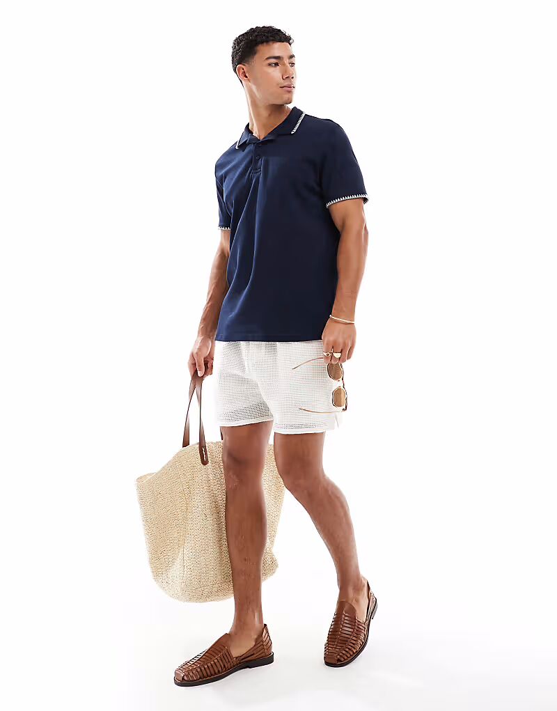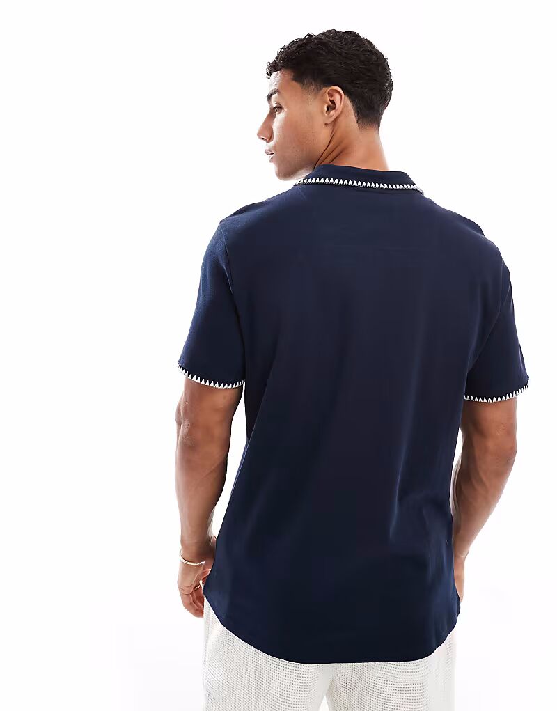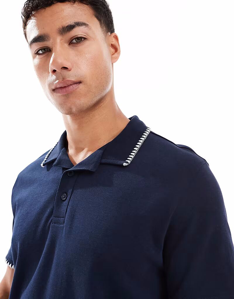 Потертый топ-поло из хлопка темно-синего цвета Threadbare