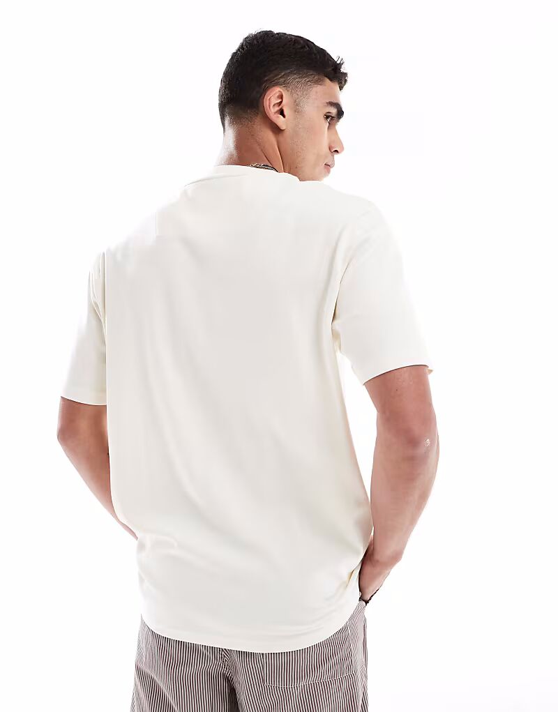 Футболка свободного кроя из потертого материала с карманом цвета экрю Threadbare