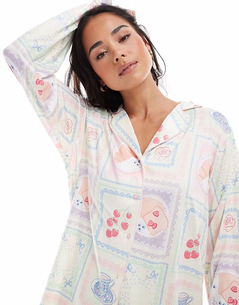 Мягкий на ощупь пижамный комплект с рисунком из плитки, белый Threadbare 5 330₽