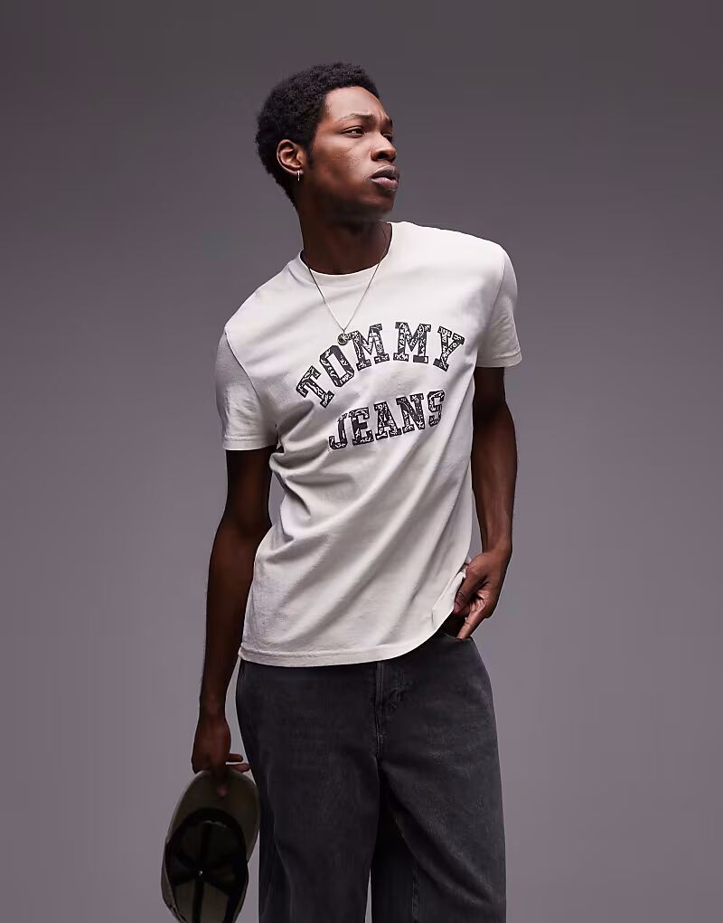 Футболка Tommy Jeans с логотипом университета в узоре пейсли, бежевого цвета