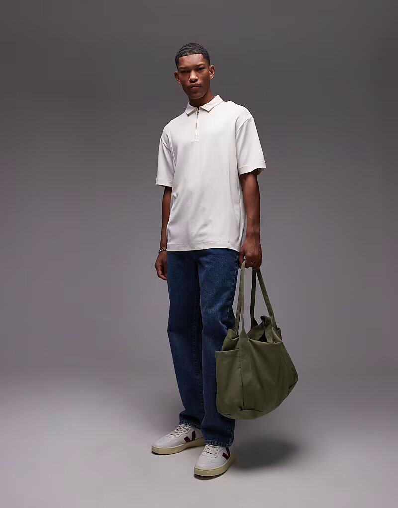Поло Topman premium oversize с застежкой-молнией цвета экрю