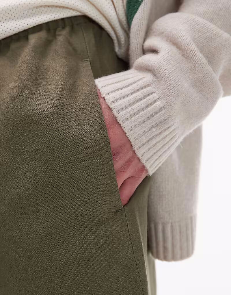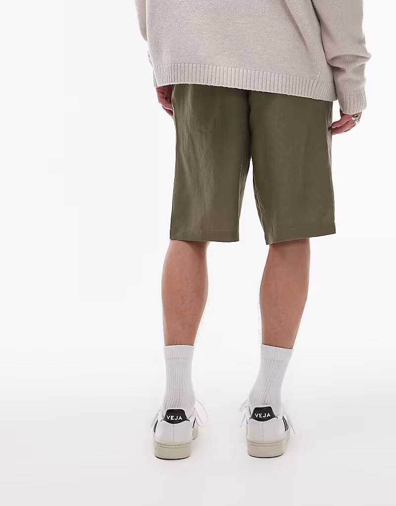 Широкие льняные шорты Topman цвета хаки 4 798₽