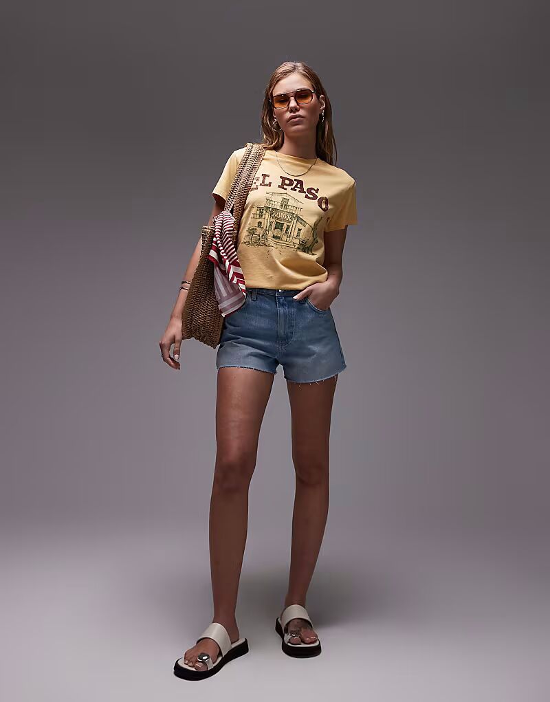 Шорты А-силуэта от Topshop из денима в отбеленном цвете