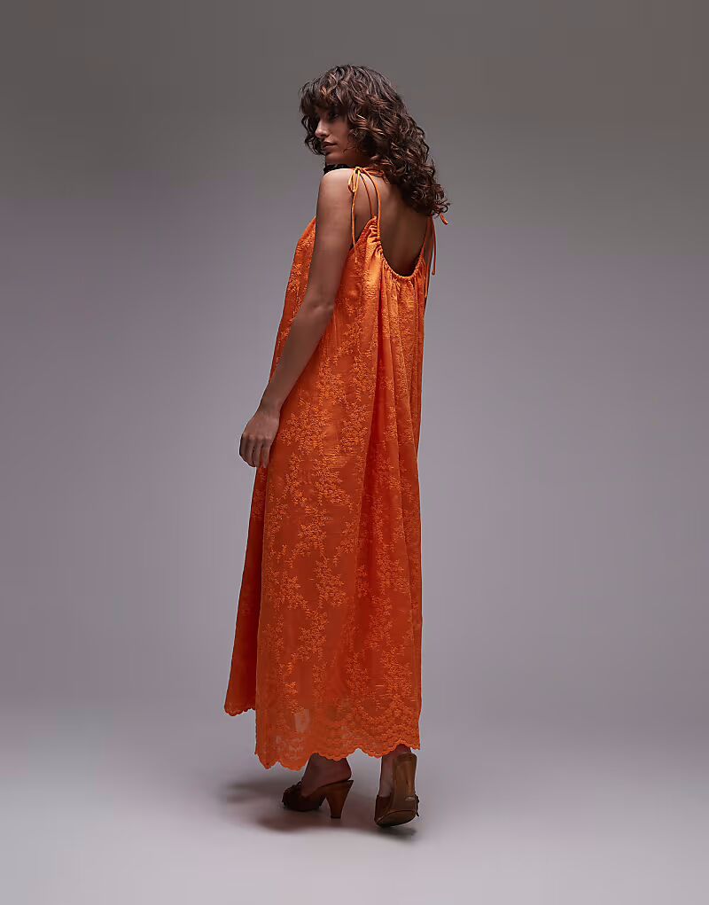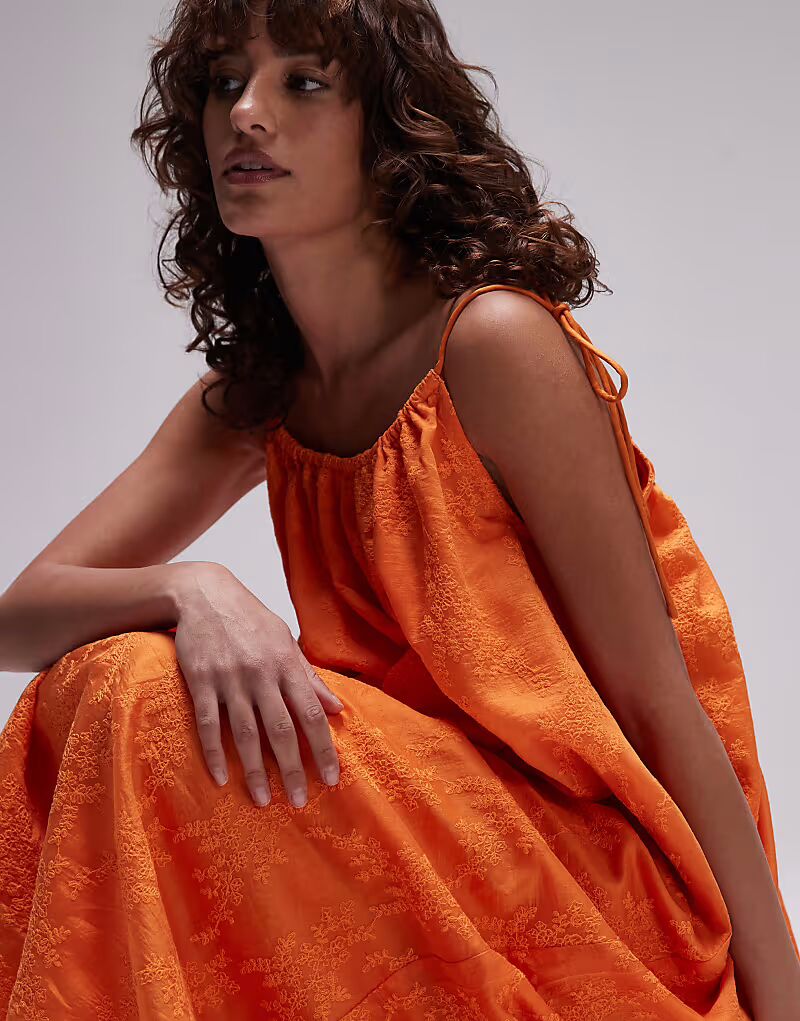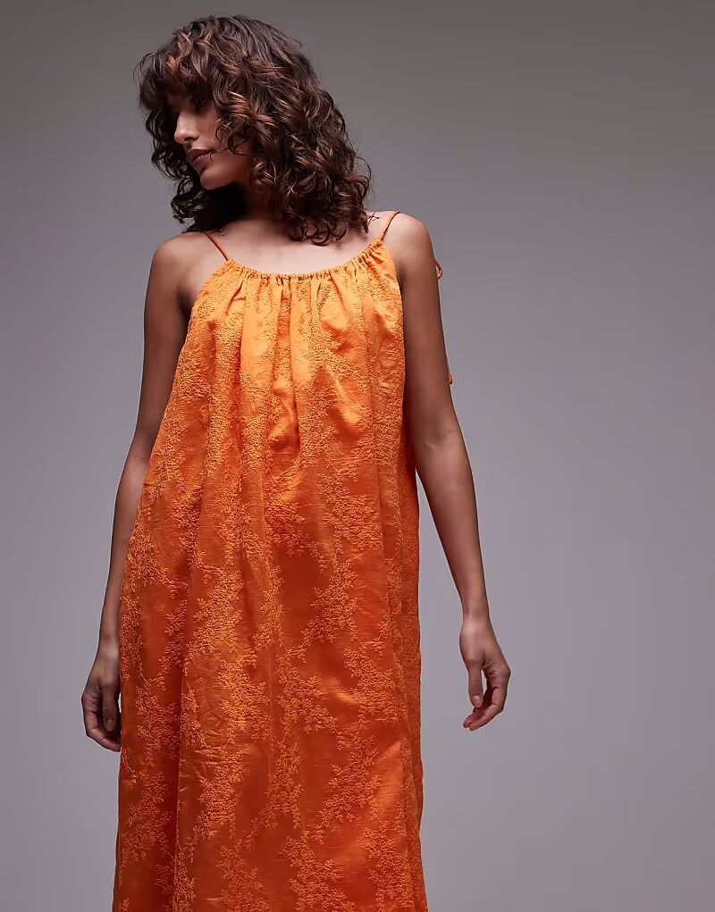 Платье миди с вышивкой Topshop оранжевого цвета 6 208₽