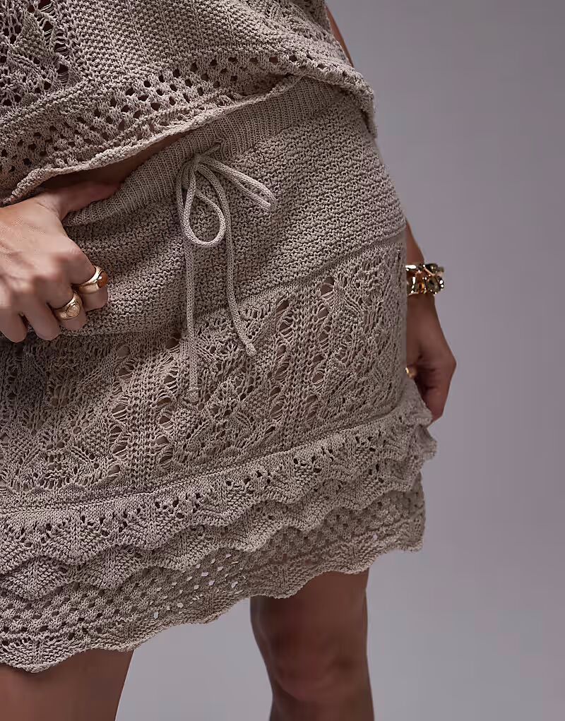 Мини-юбка в стиле вязания крючком Topshop цвета экрю 4 115₽