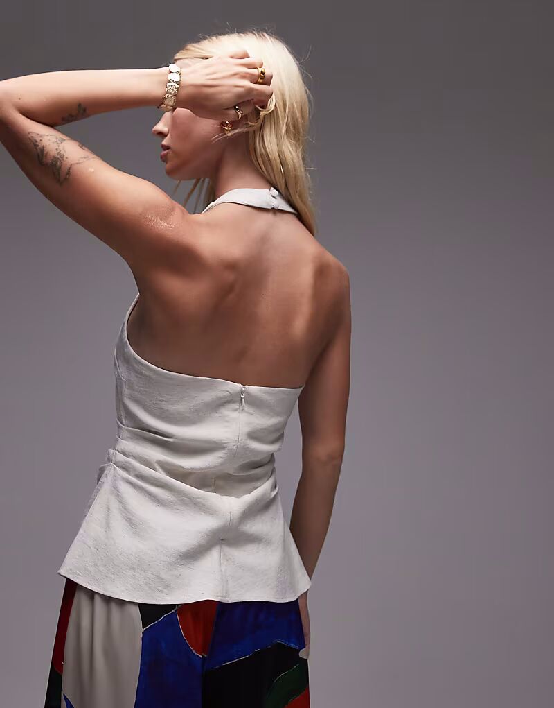 Льняной топ-халтер Topshop в натуральном цвете 5 792₽