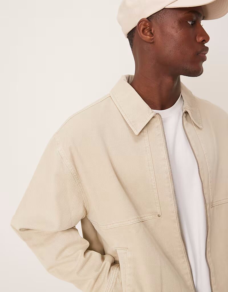 ASOS DESIGN свободная куртка харрингтон в каменном цвете