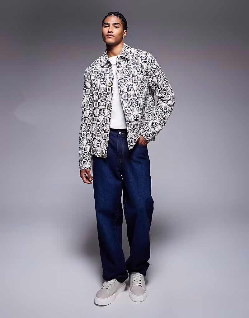 Жаккардовая куртка-харрингтон ASOS DESIGN в каменном цвете 9 691₽