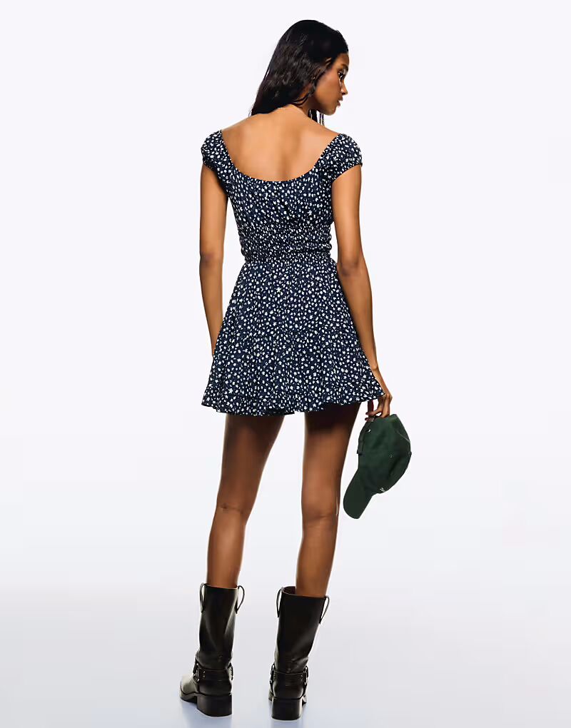 Мини-платье Bershka с оборками темно-синего цвета