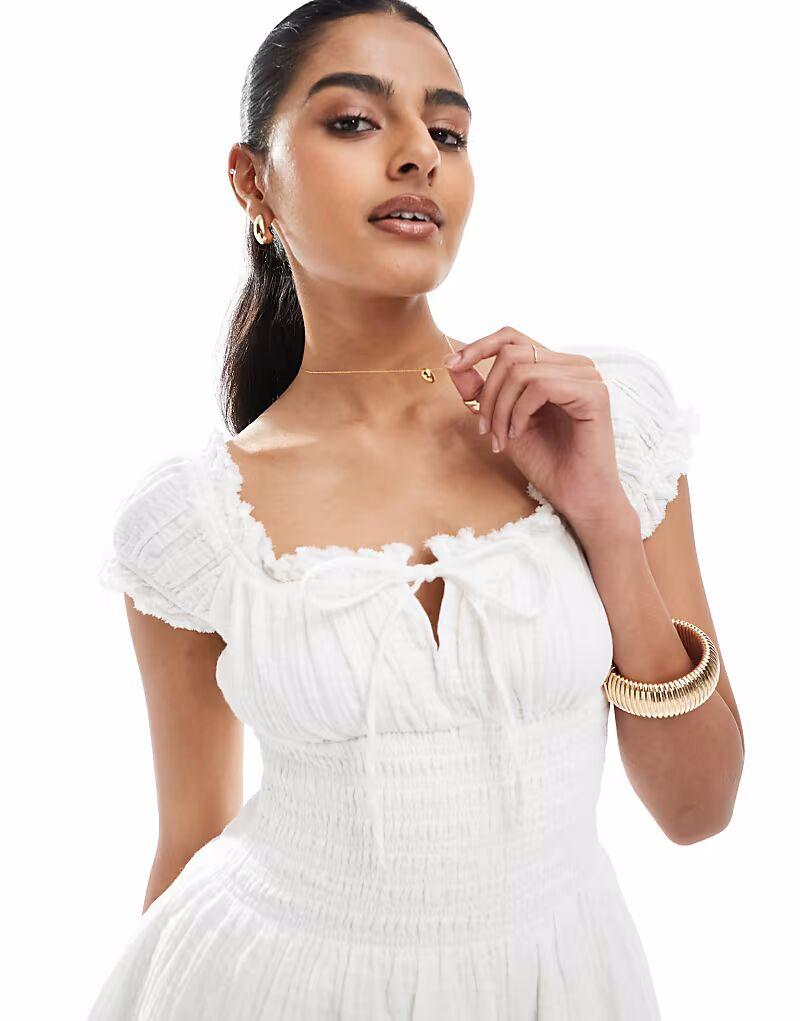 Бежевое платье мини с присборками Bershka Milkmaid 3 707₽