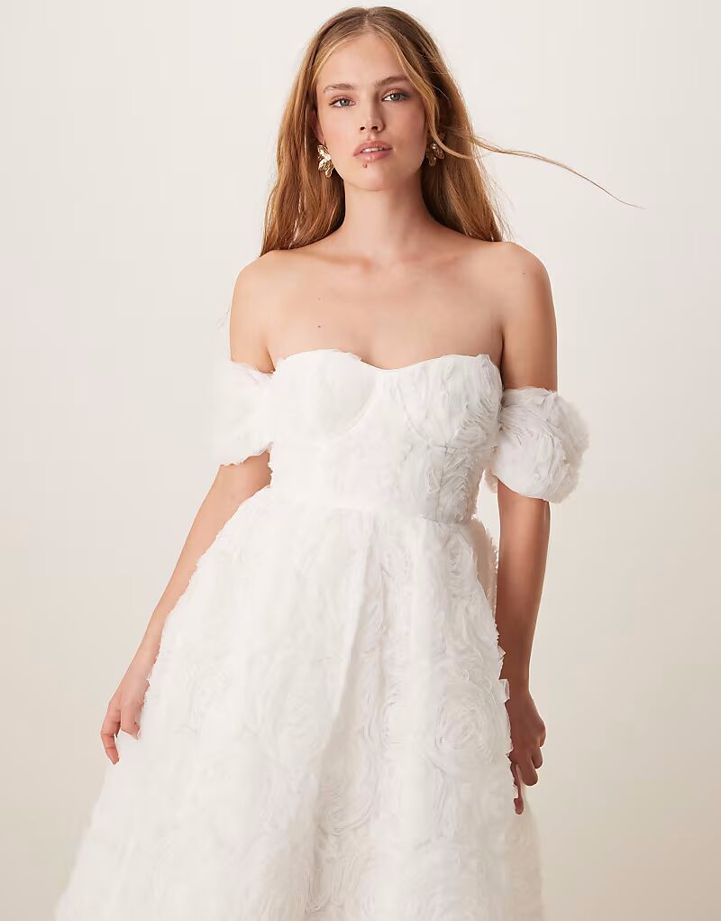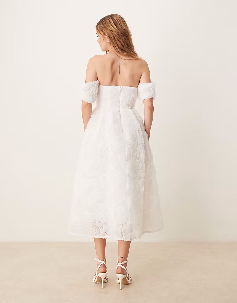 Платье миди True Decadence без бретелек из белой аппликационной сетки