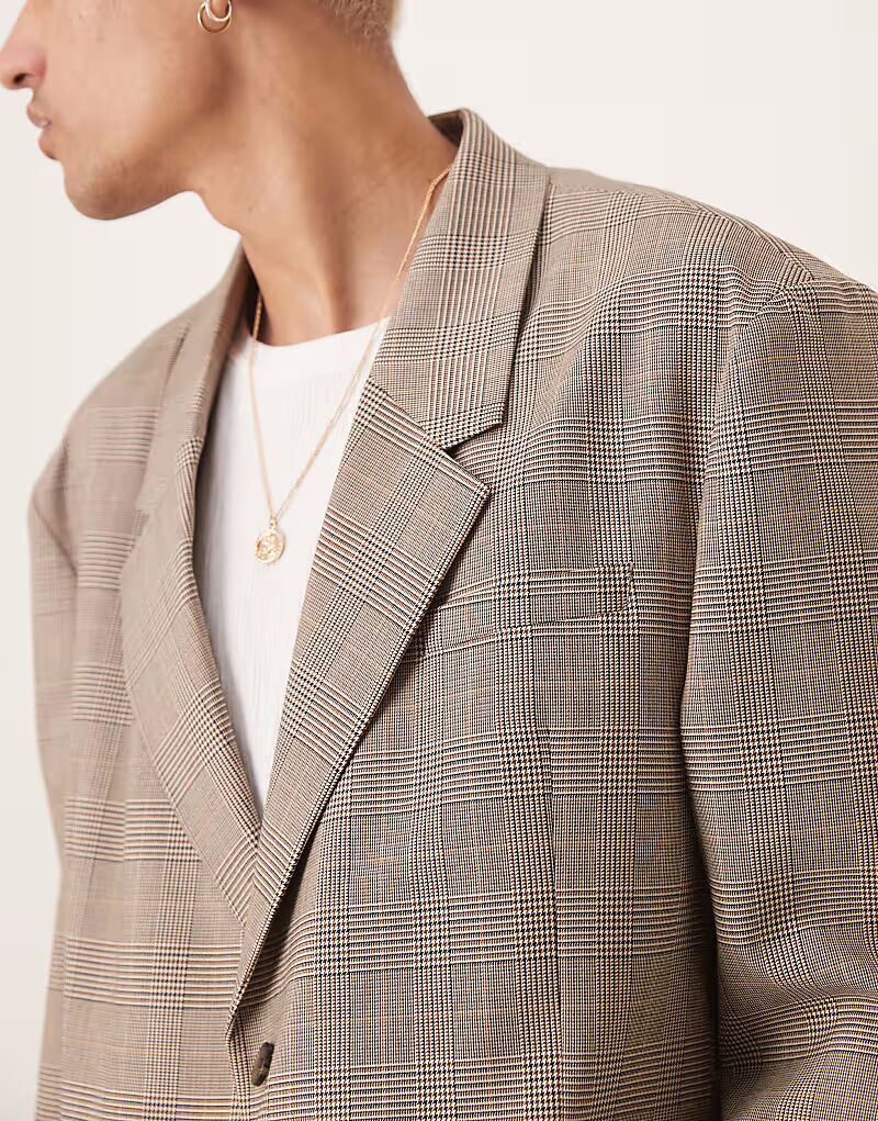 Свободный блейзер ASOS DESIGN в коричневую клетку