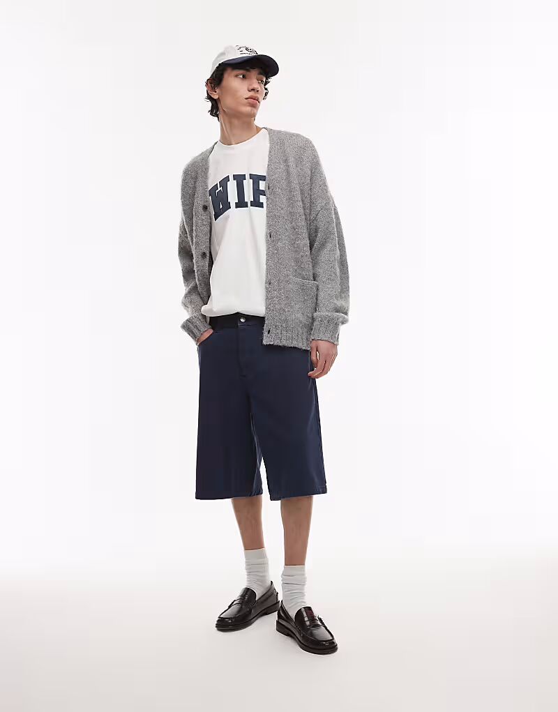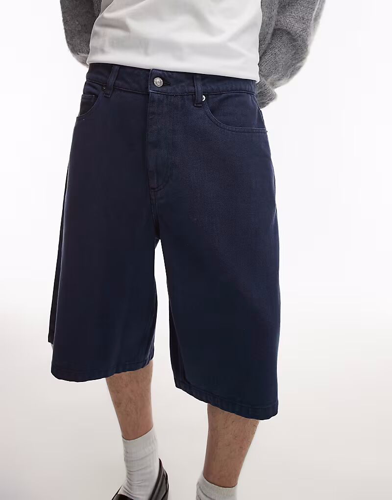 Шорты Topman из стираного твила темно-синего цвета