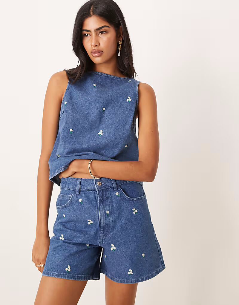 Шорты для папы ASOS DESIGN с вышитым мелким цветочным узором