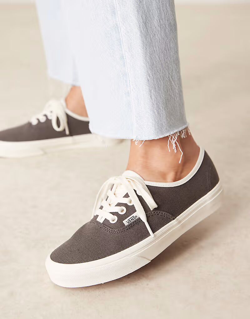 Льняные кроссовки Vans Authentic темно-коричневого цвета