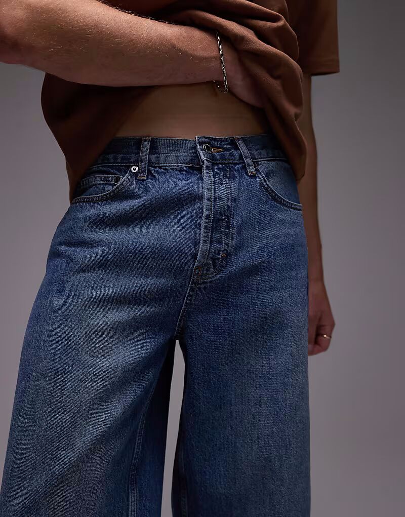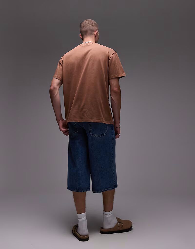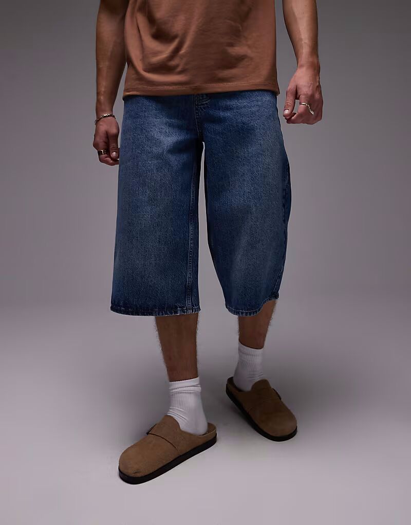 Джинсовые шорты средней длины Topman в цвете полувыбеленный синий