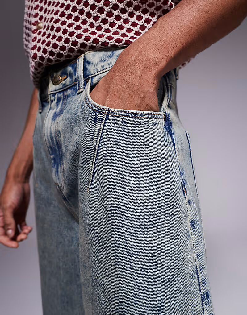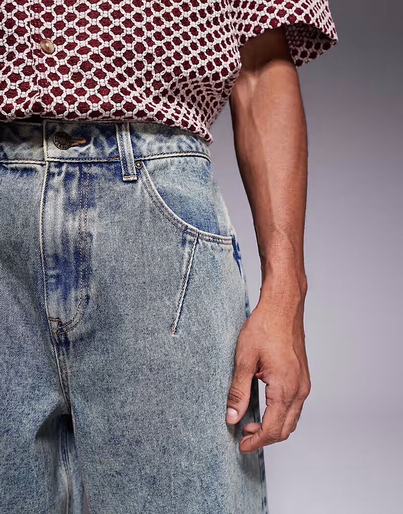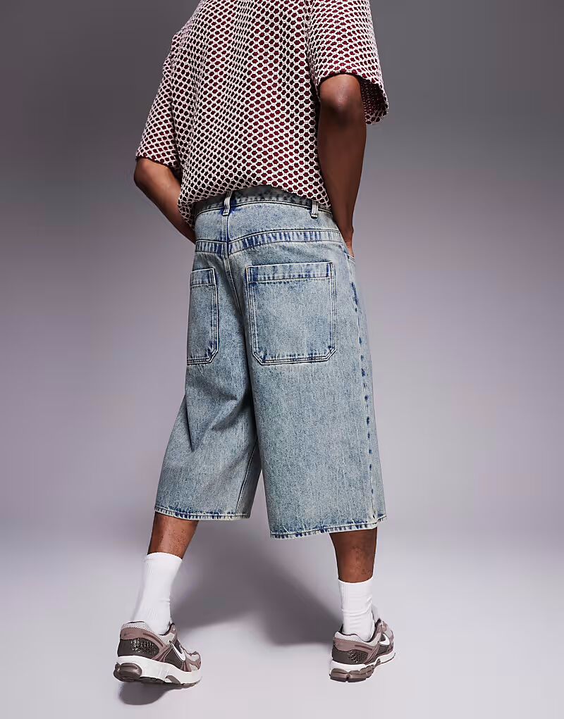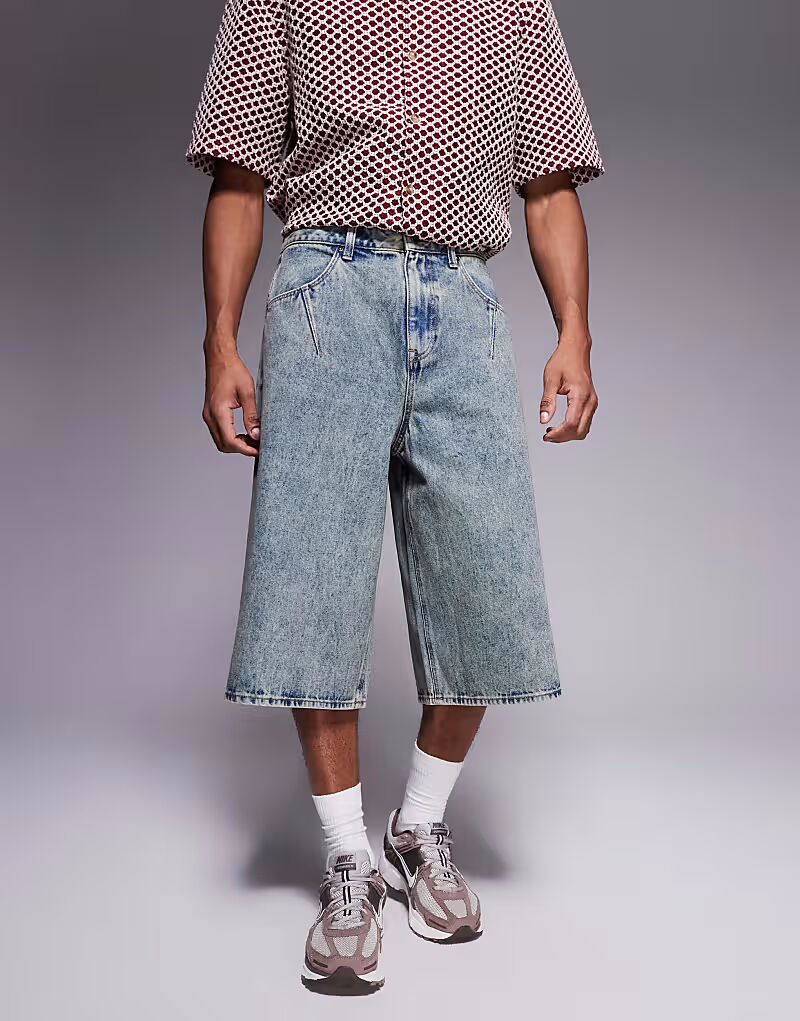 Удлиненные джинсовые шорты ASOS DESIGN с эффектом кислотной стирки и складками