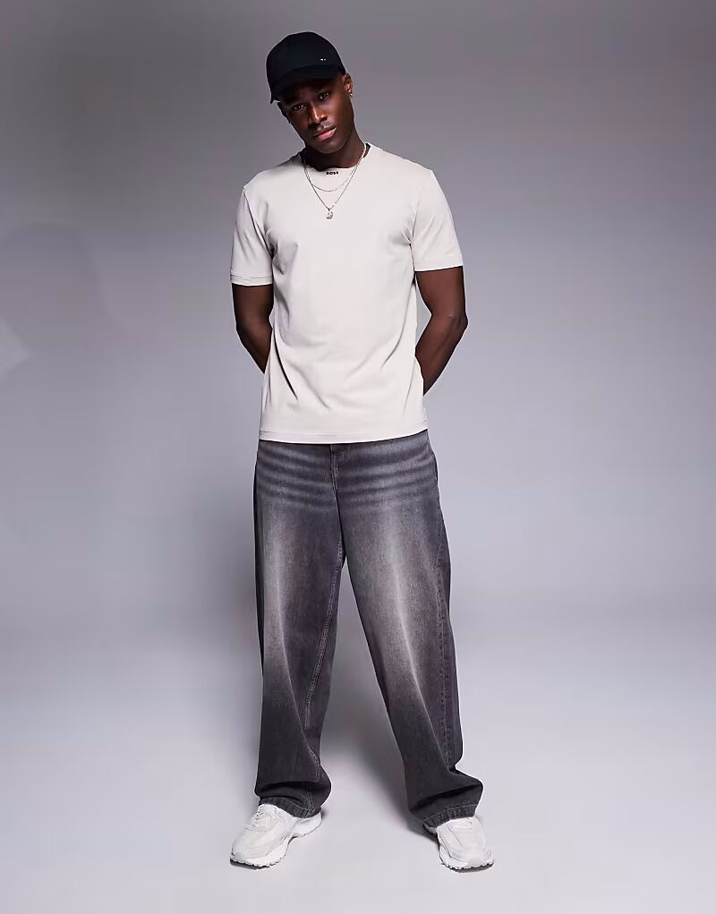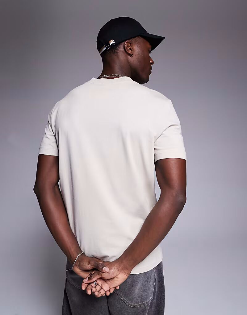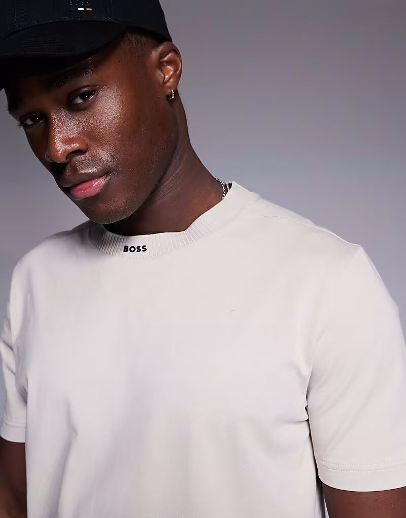 Футболка BOSS Green Rib neck с логотипом из плотной ткани бежевого цвета