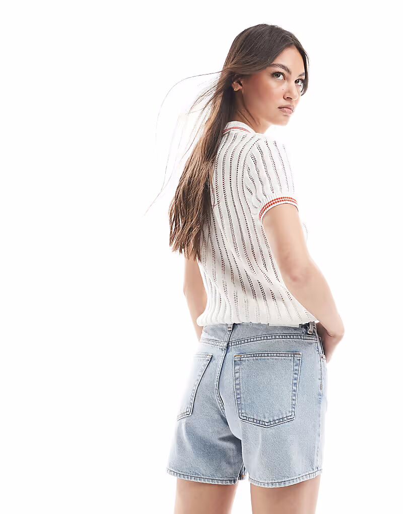 Свободные джинсовые шорты Monki Aimo светло-голубого цвета