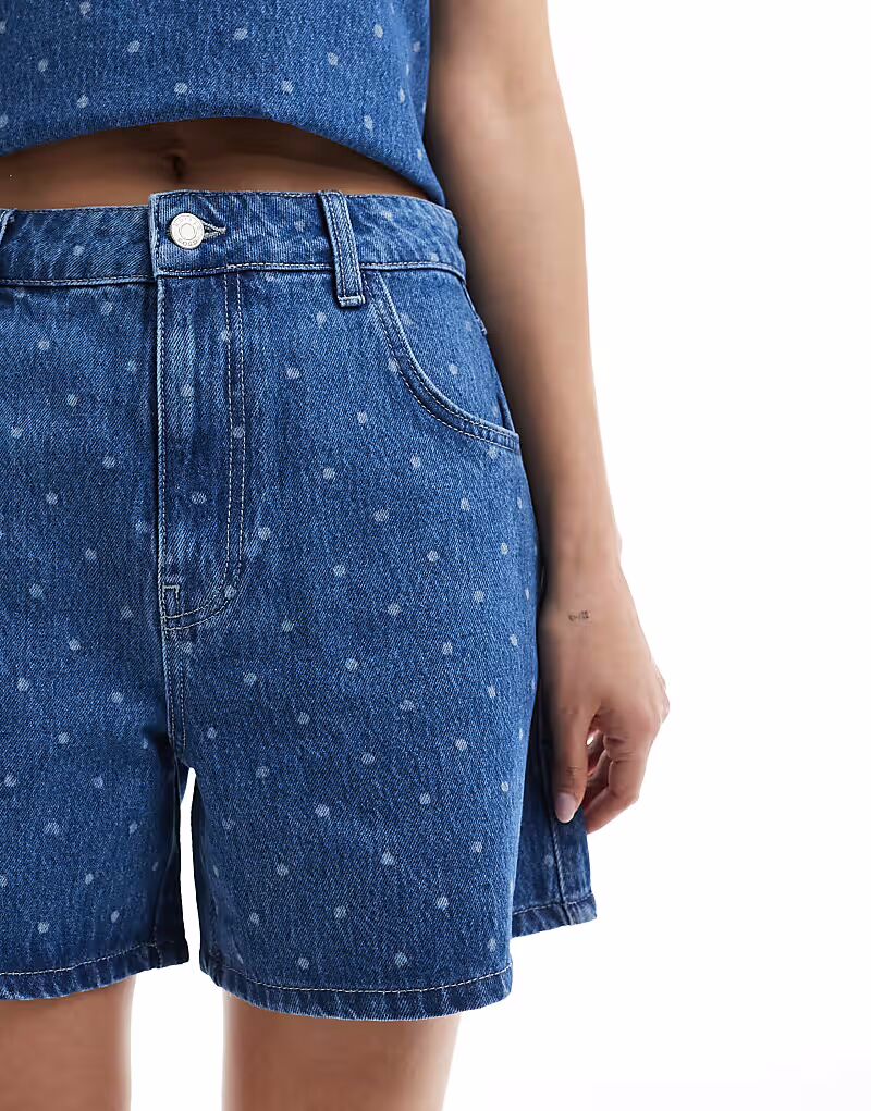 Джинсовые шорты ASOS DESIGN dad в горошек, средне-синего цвета