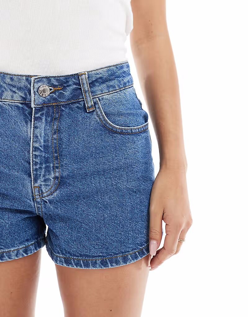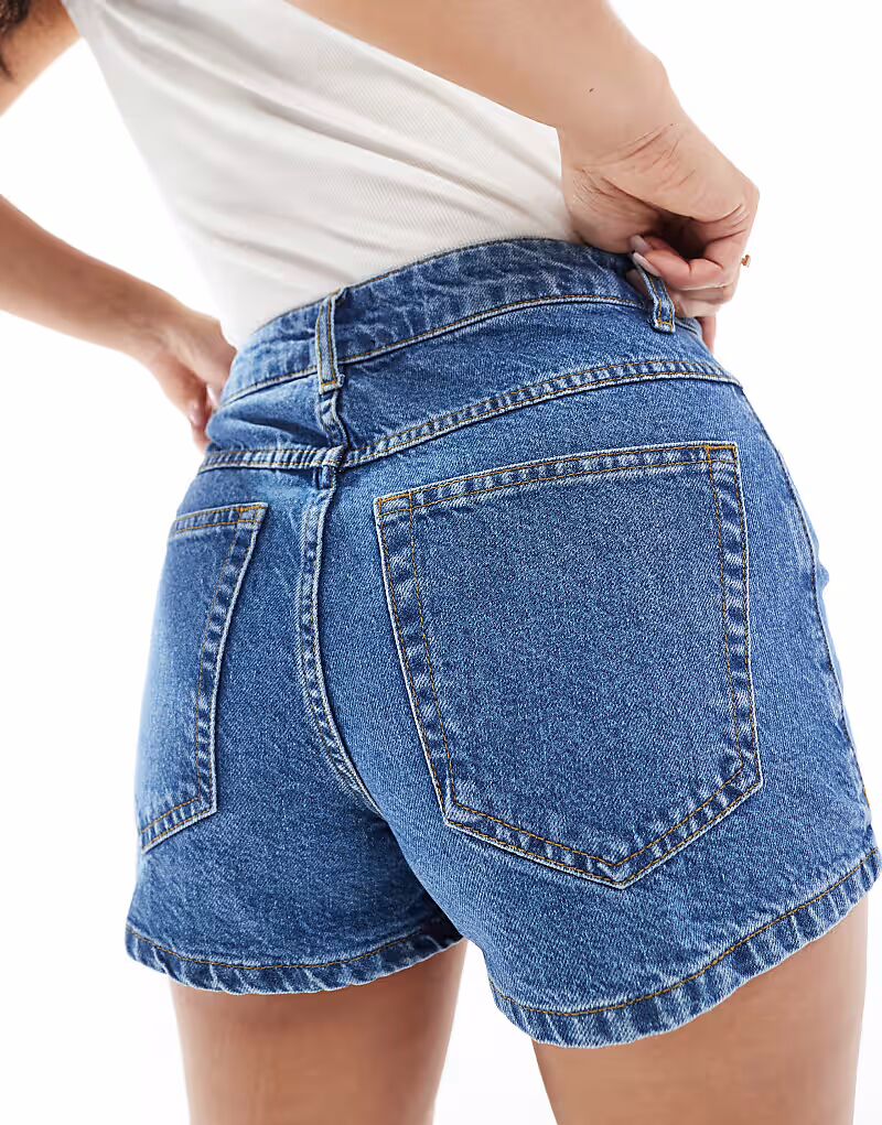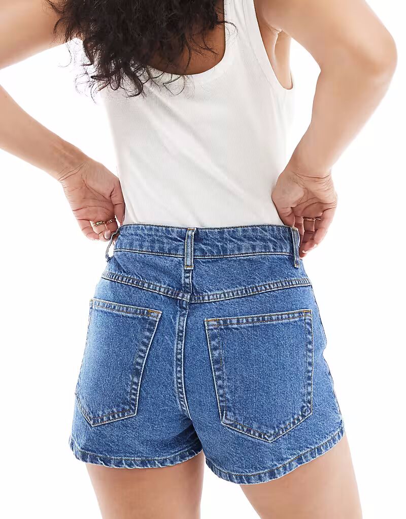 Джинсовые шорты ASOS DESIGN микро А-силуэта средне-синего цвета