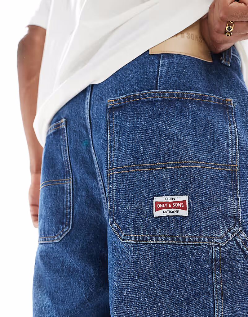 Шорты из плотницкого денима ONLY & SONS из средне-синего денима