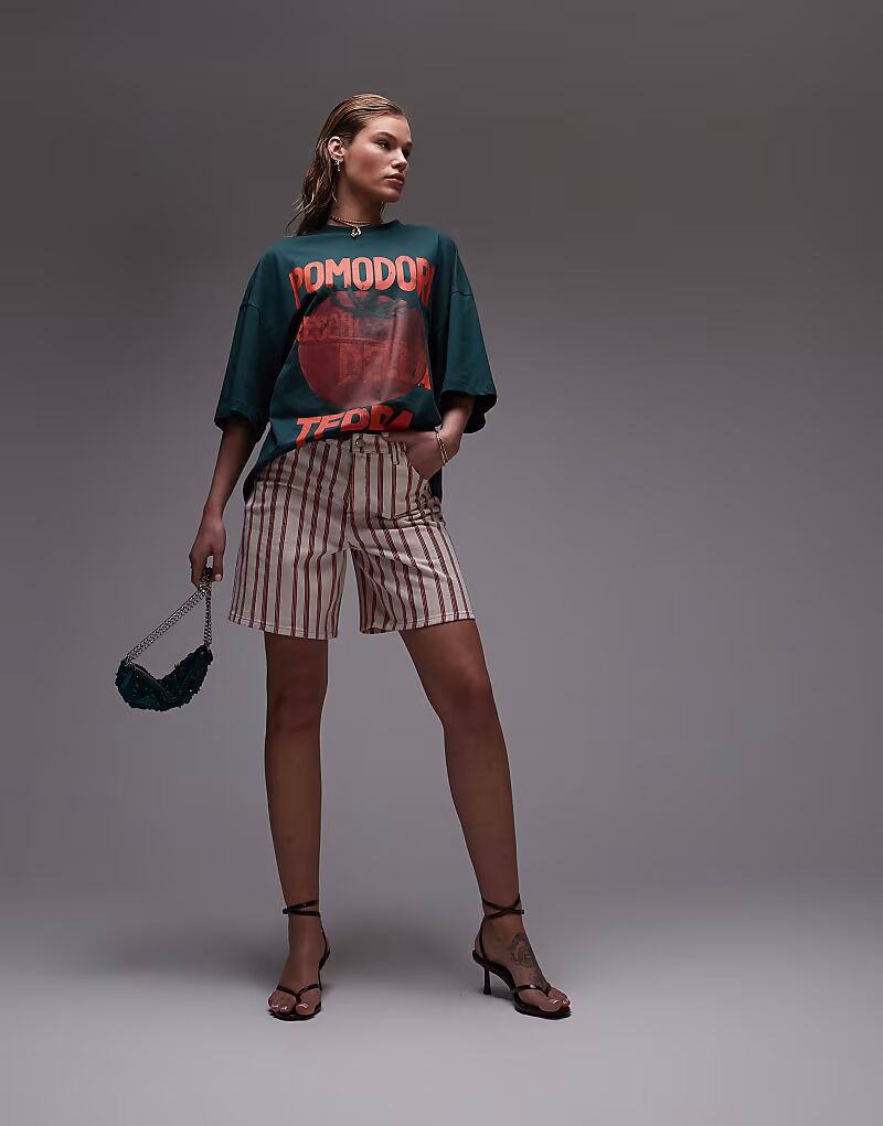 Джинсовые шорты Topshop в красную полоску